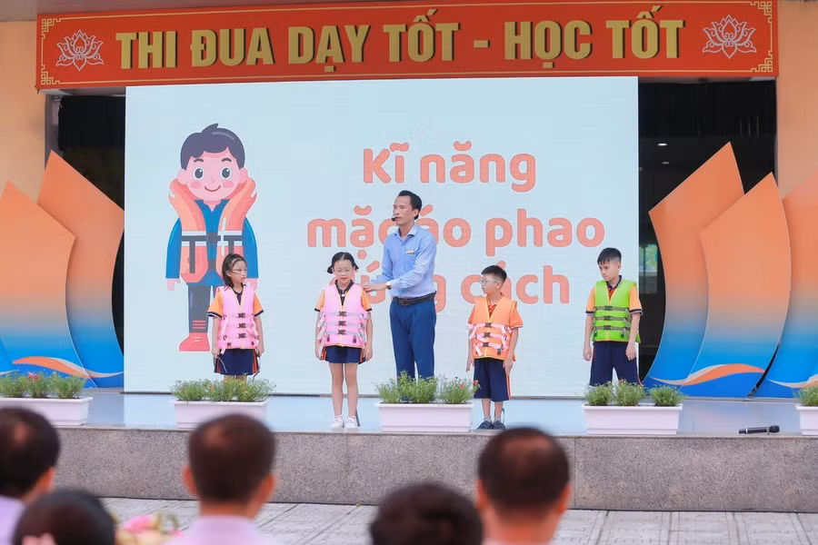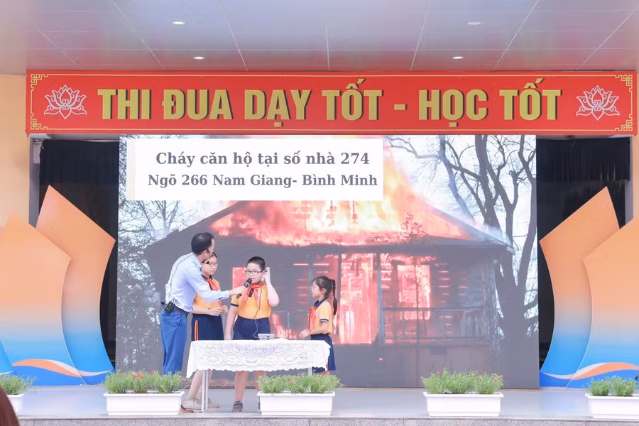 Chuyên đề do thầy giáo Đặng Vũ Hiệp, giáo viên Tổng phụ trách Đội trường Tiểu học Đoàn Kết thể hiện đã truyền tải đến các vị đại biểu, các thầy cô giáo và các em học sinh những kỹ năng phòng chống đuối nước - xử lý khi gặp hoả hoạn ở nhiều tình huống khác nhau và được đánh giá cao.