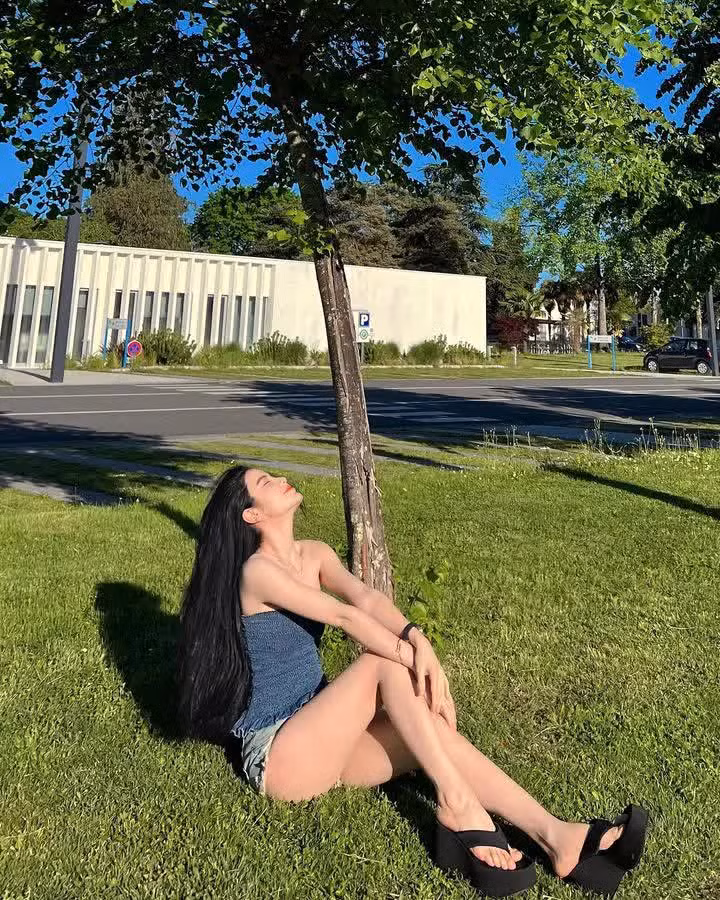 Thời gian này, Thanh Huyền cũng thường thoải mái mặc những chiếc váy rộng hay áo phông kết hợp cùng quần đùi năng động tung tăng trên đường phố Pháp.