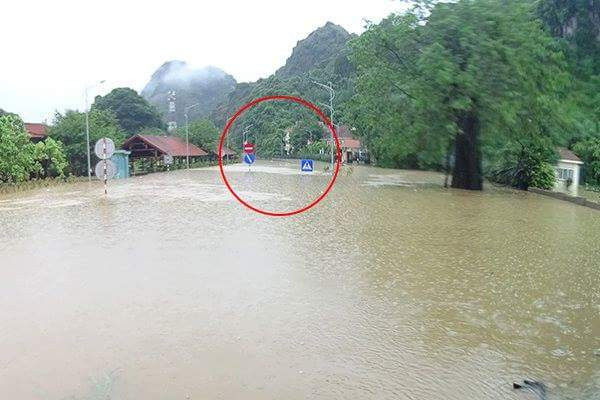 Mực nước khoảng 8h sáng nay (21/7) vẫn rất cao khiến các phương tiện không thể lưu thông qua khu vực này. Để đảm bảo người dân không đi vào khu vực ngập sâu nguy hiểm, lực lượng chức năng đã căng dây, đồng thời đặt biển cảnh báo.