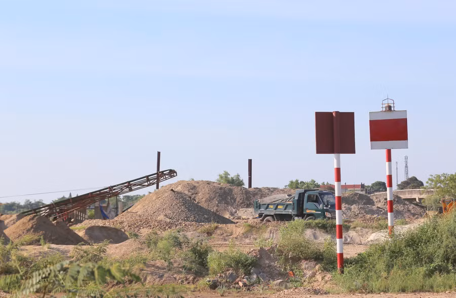 | Bãi tập kết cát sỏi không phép nhìn về phía cầu Thành cổ. |