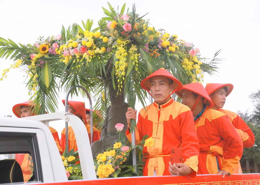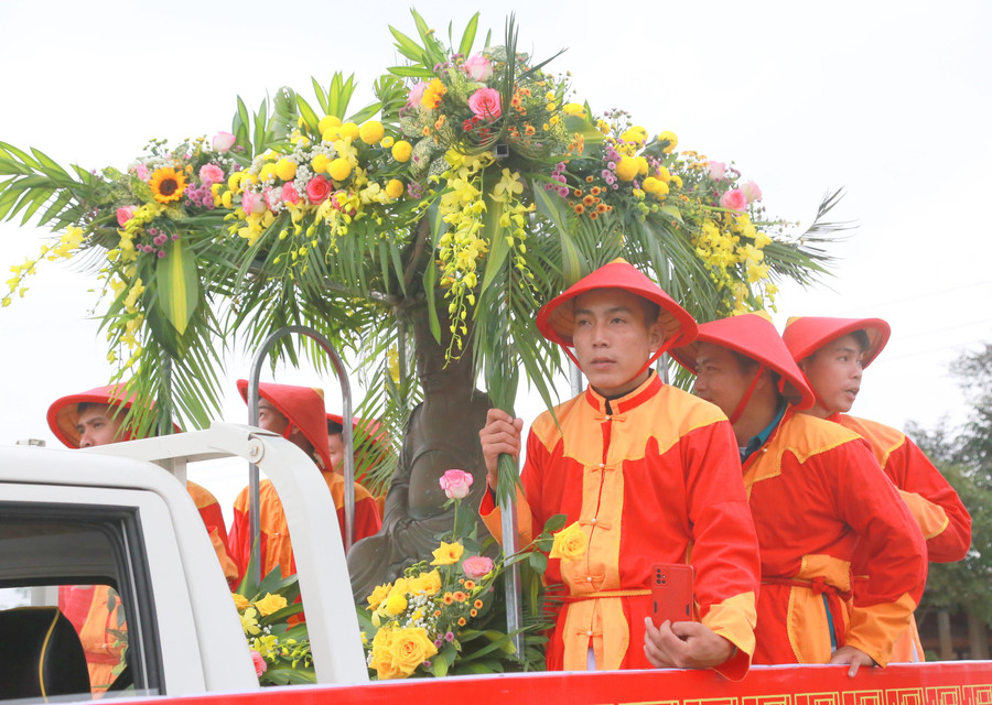 | Lễ rước và an vị pho tượng được cho là tạc ngài Nguyễn Ư Dĩ được tổ chức trang trọng, thành kính. |