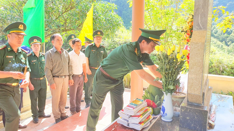 | Lãnh đạo Bộ Chỉ huy BĐBP Quảng Trị và Đồn Biên phòng Hướng Lập tri ân liệt sĩ. |