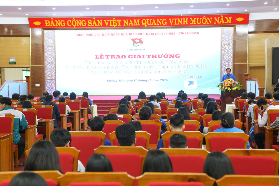 Ngày 17/11, Ban Thường vụ Tỉnh Đoàn Quảng Trị tổ chức Lễ trao giải thưởng “Nhà giáo trẻ tiêu biểu tỉnh Quảng Trị” năm 2023 và tuyên dương “Học sinh 3 tốt”, “Học sinh 3 rèn luyện”, “Sinh viên 5 tốt” cấp tỉnh năm học 2022 - 2023.