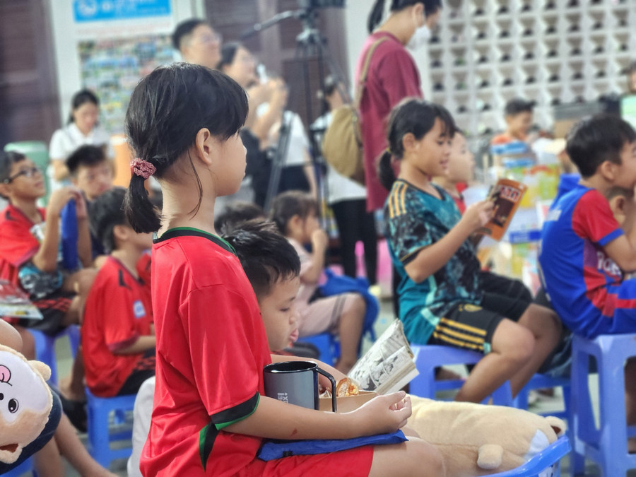 | Ngoài những phần quà ý nghĩa góp phần động viên tinh thần cho các em, hơn 100 em nhỏ đã có những phút giây hào hứng và sôi nổi khi tham gia các trò chơi: tô màu mascot én, vận chuyển bóng bay, dắt bóng vượt chướng ngại vật, ghế âm nhạc và đánh Golf. |