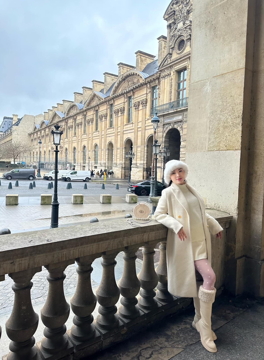 Nữ diễn viên viết: "Anh đã xuất hiện, được ví như thiên thần hộ mệnh cho em những mong muốn thành hiện thực. Em đang thật sự rất hạnh phúc, mãn nguyện vì tận hưởng khoảnh khắc này giữa đất trời Paris - nơi mà em yêu thích nhất, được gọi là đẹp nhất thế giới. Nơi mà có anh và có cả tình yêu tuyệt vời của anh".