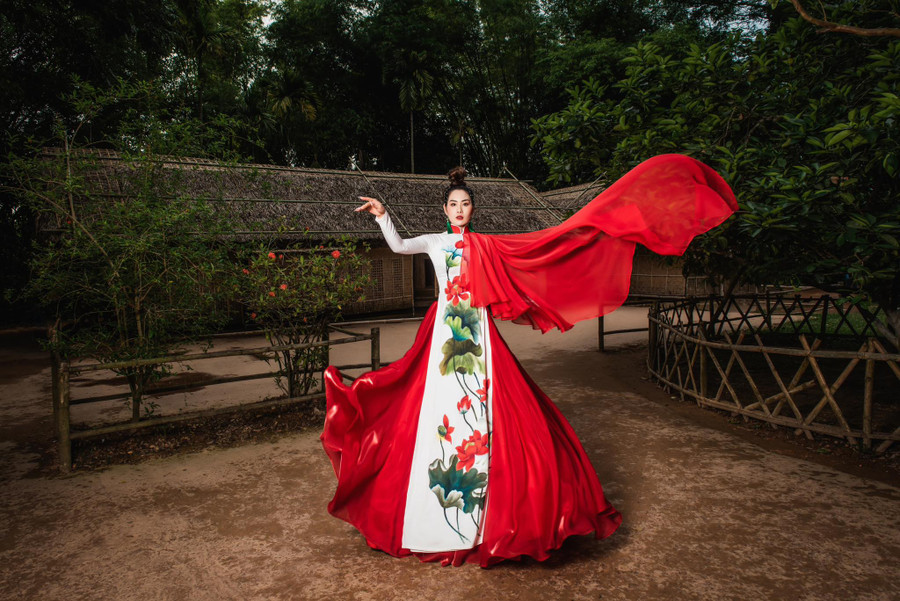 Thiết kế do Top 6 Miss International Queen Vietnam Nguyễn Vũ Hà Anh thể hiện với tà trước vẽ hoa sen quê Bác, tà sau dài 20 mét phác họa lại những nơi mà Bác từng làm việc như Bến Nhà Rồng, Lán Nà Nưa, Nhà sàn Bác Hồ, Quê nội của Bác cùng những đầm sen…