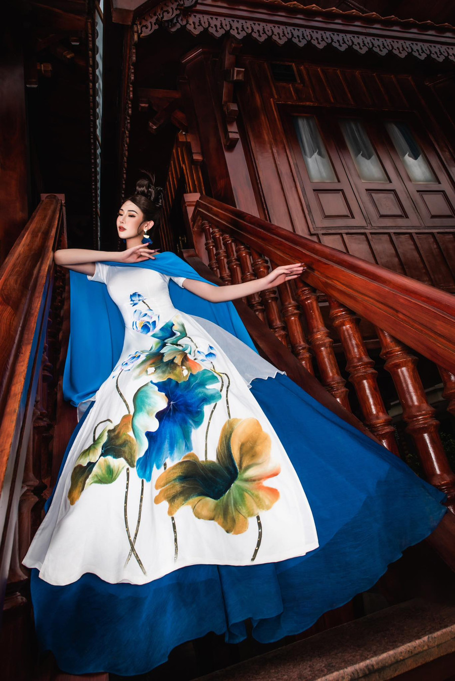 BST gồm những thiết kế họa tiết hoa sen là chủ đạo, có màu sắc rực rỡ, kiểu dáng cách tân, trẻ trung nhưng vẫn kín đáo và đảm bảo thuần phong mỹ tục, trang nghiêm. Với chất liệu chính là lụa cao cấp, lụa Hàn Quốc, tơ tằm, oganza, những tà áo dài càng tăng thêm vẻ sang trọng, cá tính mà vẫn giữ được nét mềm mại, duyên dáng.