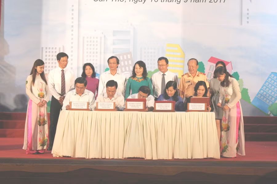 Tại buổi lễ, đại diện 5 Sở GD&ĐT khu vực Tây Nam bộ đã ký cam kết với Bộ GD&ĐT, Ủy ban ATGT Quốc gia trong việc tăng cường triển khai thực hiện công tác giáo dục ATGT trong trường học.
