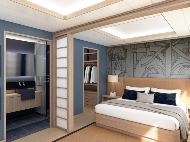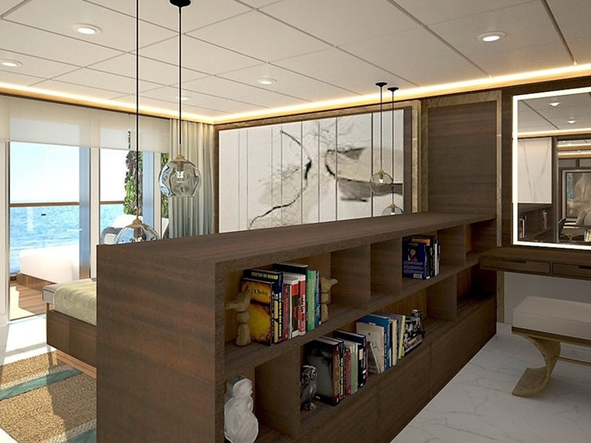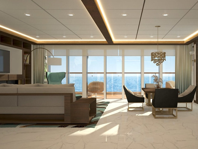 Du thuyền Blue World Voyages - sẽ đi vào hoạt động từ năm 2021, chính là chiếc du thuyền siêu sang đầu tiên trên thế giới bán cả căn hộ, từ 2,2 triệu USD (khoảng hơn 50 tỷ đồng).