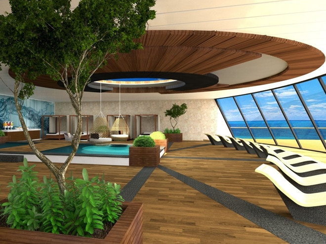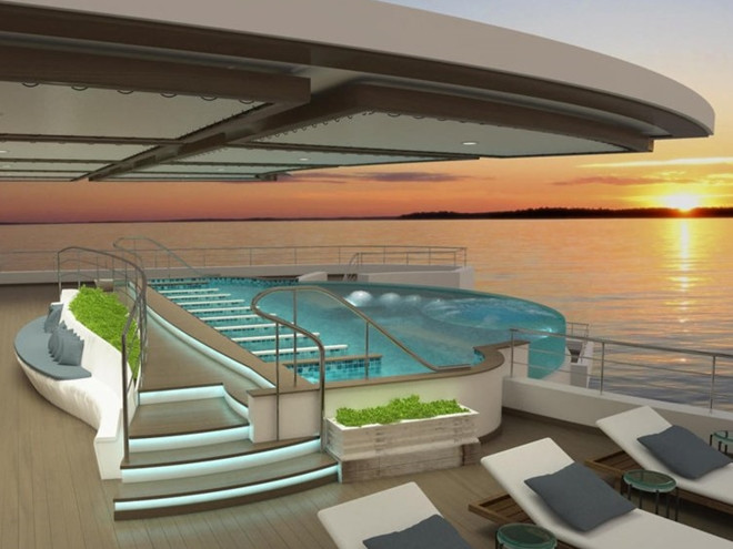 | Phối cảnh trên du thuyền siêu sang Blue World Voyages. |