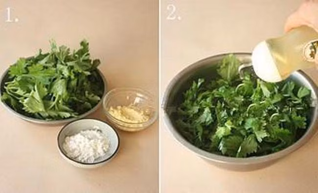 Gia vị: 1 muỗng cà phê dấm, số lượng tỏi thích hợp, 1 muỗng cà phê nước tương, 1 ít dầu thực vật, 1/3 muỗng cà phê dầu mè, 1/2 muỗng cà phê đường.