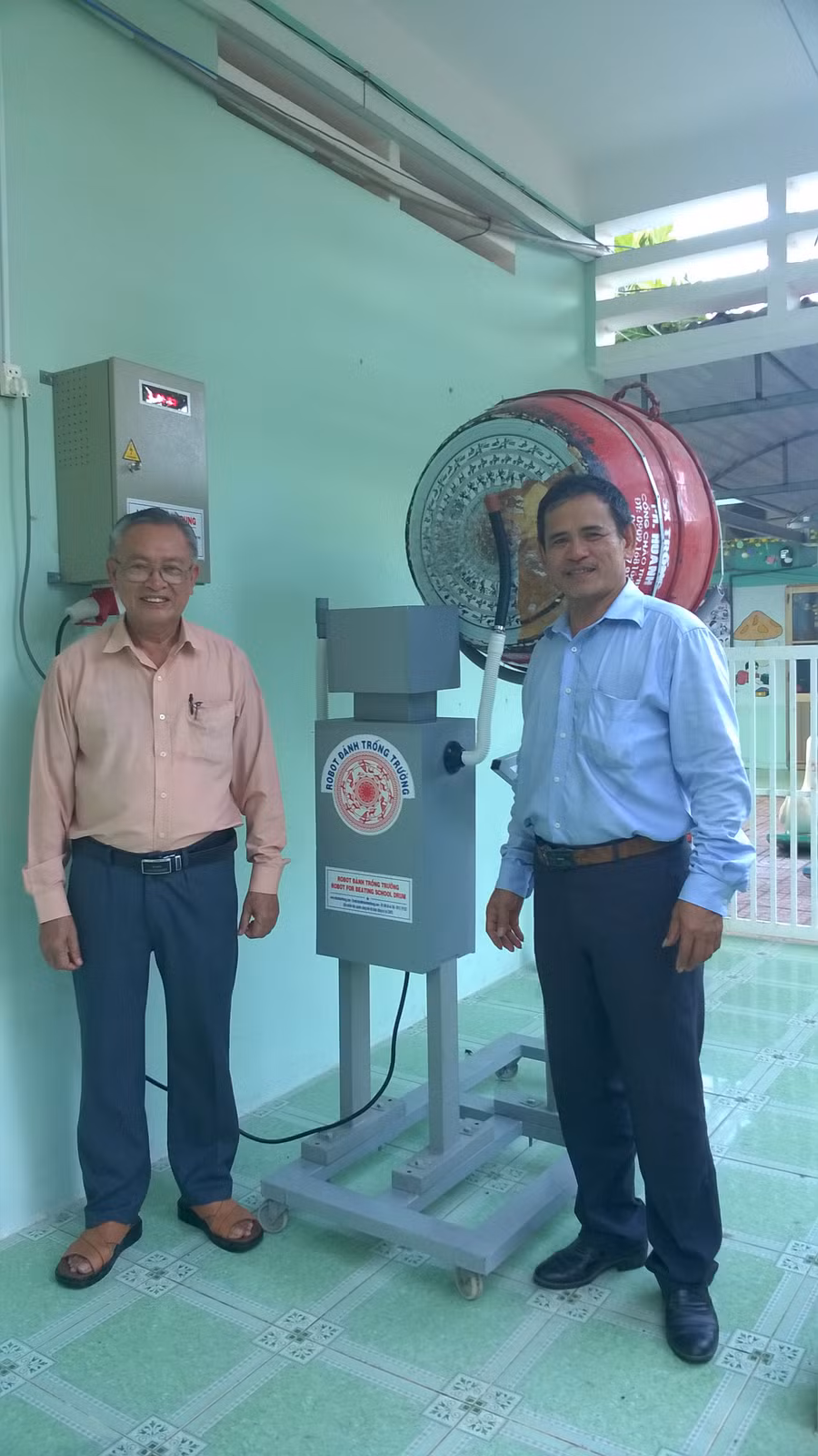 Con robot đánh trống trường đầu tiên được chế tạo thành công năm 2014, đến nay đã có sở sản xuất ROBOT đánh trống trường nhằm cung ứng cho các nhà trường.