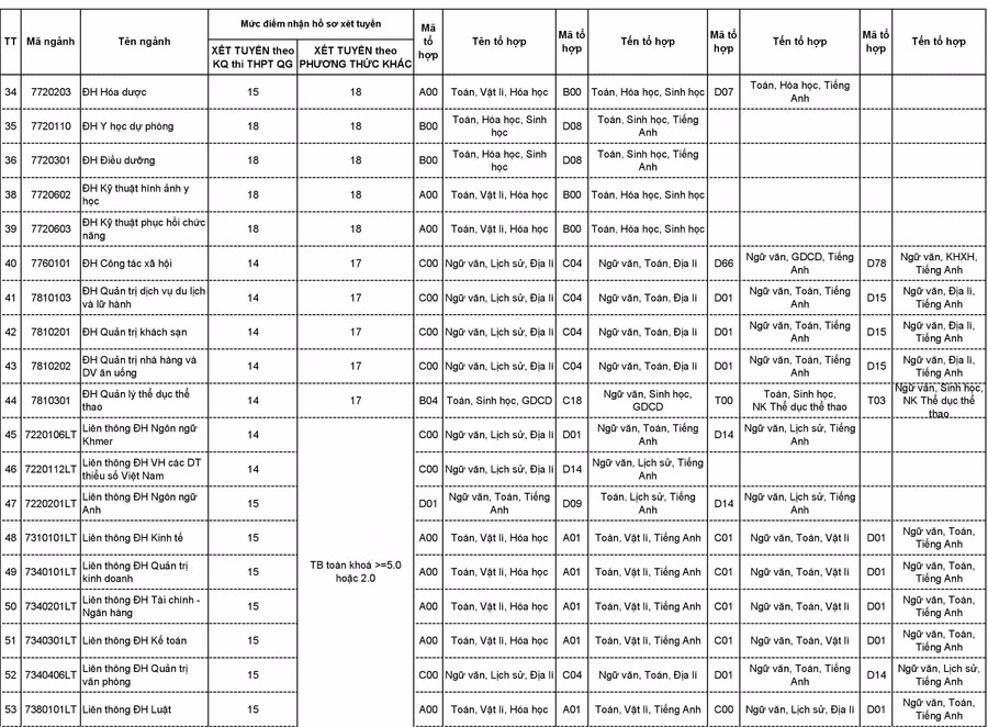 Theo đó, đối tượng tuyển sinh gồm: thí sinh đã tốt nghiệp THPT (theo hình thức giáo dục chính quy hoặc giáo dục thường xuyên) hoặc đã tốt nghiệp trung cấp; thí sinh tốt nghiệp trình độ cao đẳng có bằng tốt nghiệp do cơ sở đào tạo trong nước cấp; thí sinh tốt nghiệp trung cấp nhưng chưa có bằng tốt nghiệp trung học phổ thông (THPT) phải học và được công nhận hoàn thành các môn văn hóa THPT theo quy định.