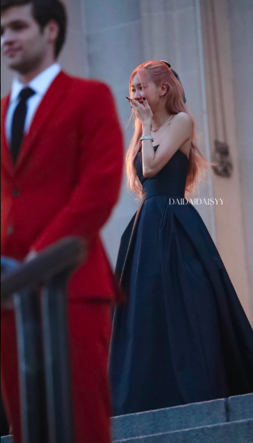 Rosé chứng tỏ mình là tâm điểm của sự kiện ngay từ khi bước chân lên thảm đỏ, khoe visual tựa công chúa trong chiếc váy dạ hội màu đen cổ điển cùng mái tóc buông xõa, uốn xoăn tinh tế.