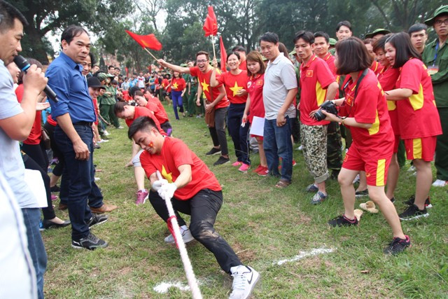 Một số hình ảnh rực sắc đỏ sao vàng tại Giải kéo co mừng ngày 8/3 vô cùng sôi động, hấp dẫn: