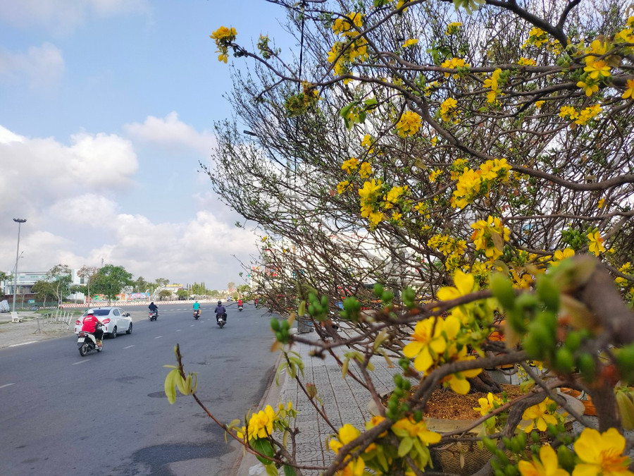 | Mai vàng khoe sắc trên các tuyến phố. |
