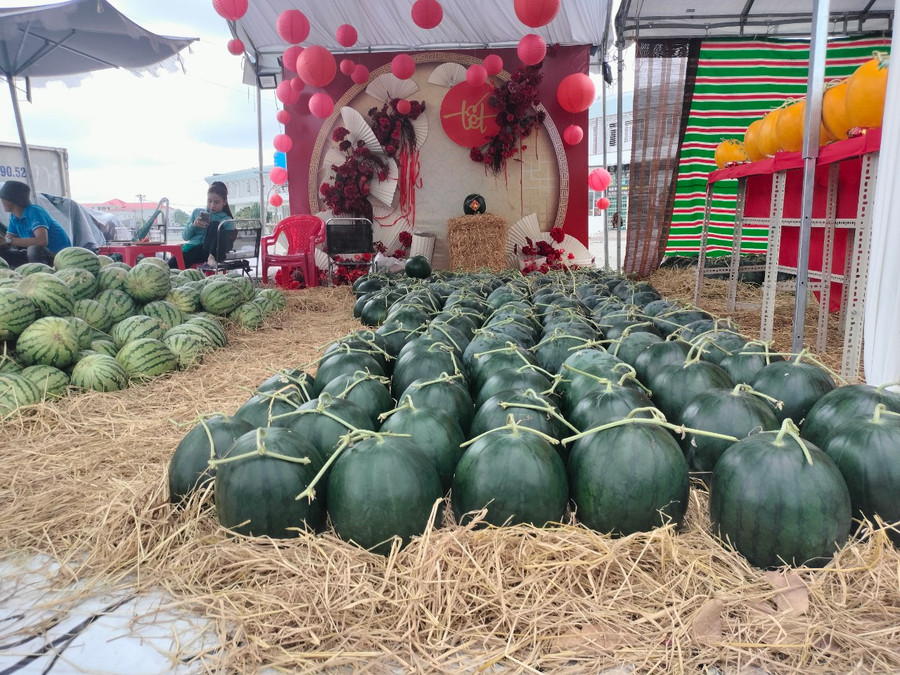 | Các gian hàng bán dưa hấu trưng Tết. |