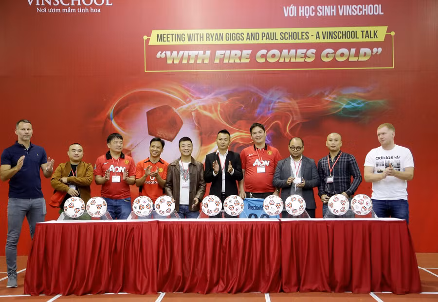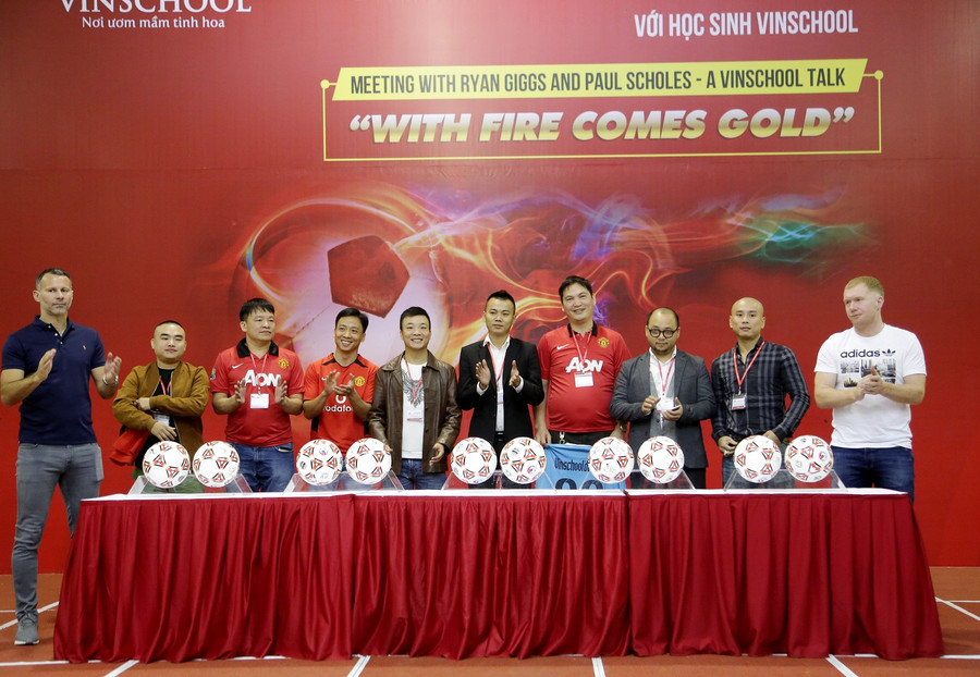 | Cuối chương trình, Ryan Giggs và Paul Scholes đã ký tặng Vinschool 10 quả bóng. Các quả bóng này được bán đấu giá cho các Phụ huynh Vinschool để góp vào quỹ từ thiện xây trường cho trẻ em nghèo, đây là chương trình từ thiện được tổ chức hàng năm bởi Vinschool. |