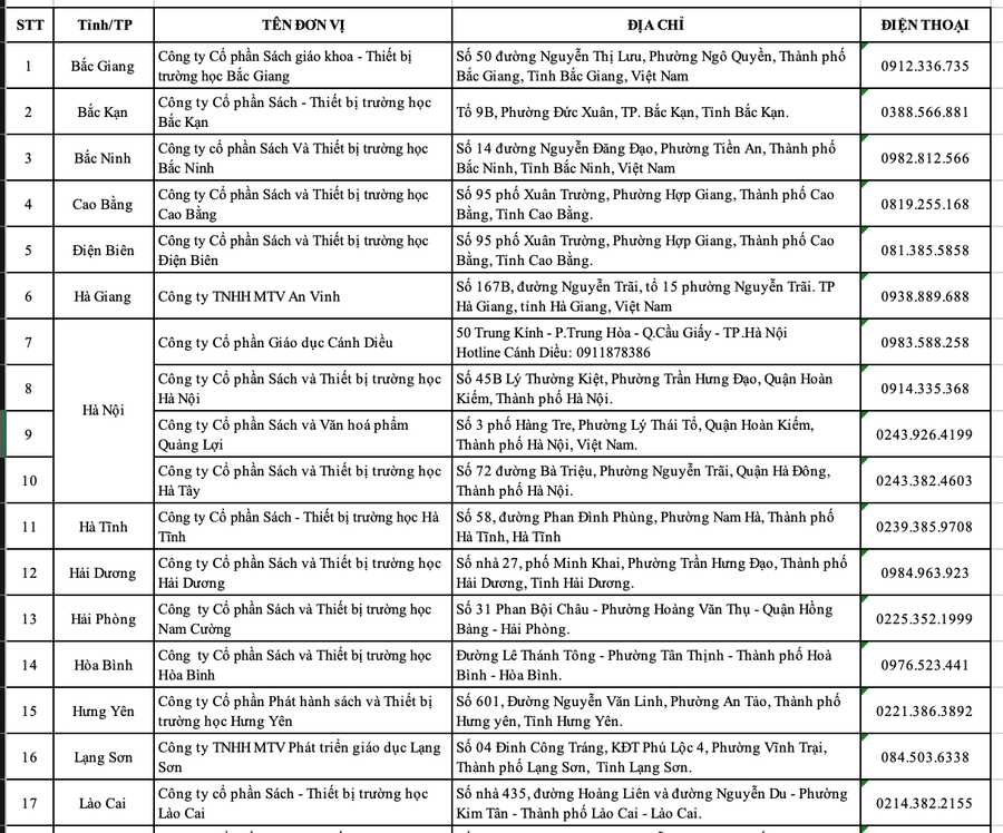 Nếu phụ huynh có con học bộ sách Cánh Diều, có thể tìm đến các địa chỉ phân phối dưới đây, để thuận tiện cho việc mua sắm sách vở đầu năm cho con.