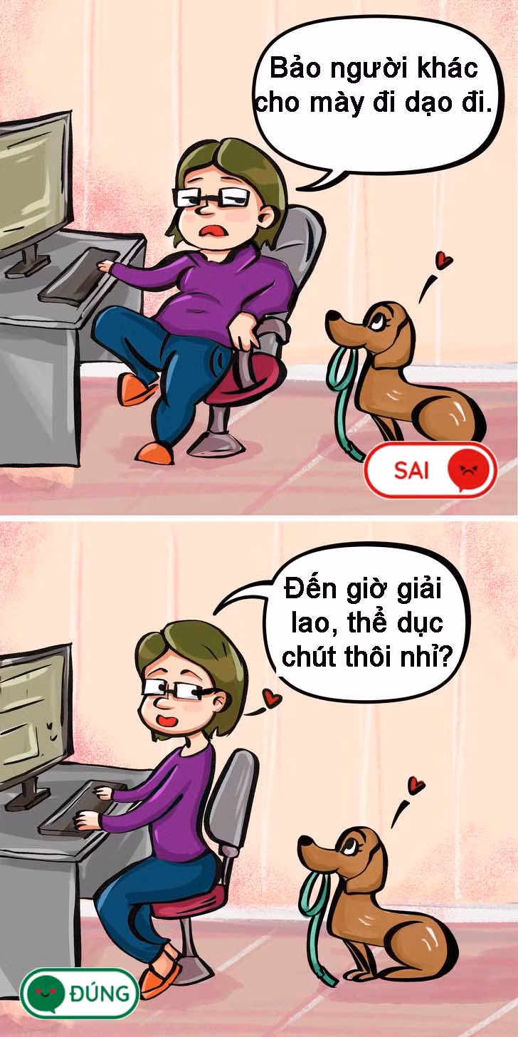 Hãy đặt ra những khoảng nghỉ ngắn trong giờ làm việc và đơn giản là đi bộ giữa các phòng. Sẽ tốt hơn nếu bạn đặt ra lịch cố định để tập với máy chạy hay tập theo các bài tập ngắn trên youtube có hướng dẫn.