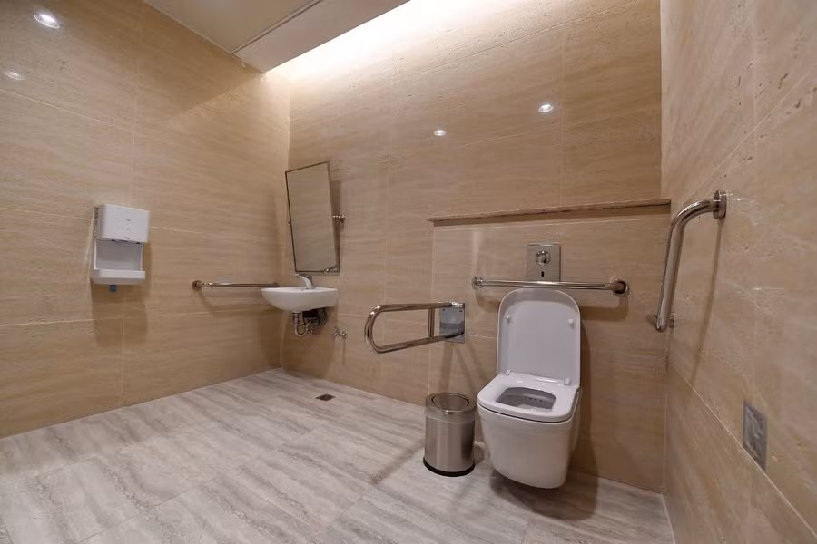 Nhưng sự khác biệt lớn nhất của khu vực này có lẽ là nhà vệ sinh dành cho người khuyết tật, với những thiết bị chuyên biệt để những con người thiệt thòi trong xã hội không có cảm giác bị phân biệt. Chỉ riêng điều này cũng đủ cho thấy nhà đầu tư sân bay Vân Đồn tinh tế và dành sự quan tâm đặc biệt như thế nào cho những cảm nhận và trải nghiệm của hành khách.