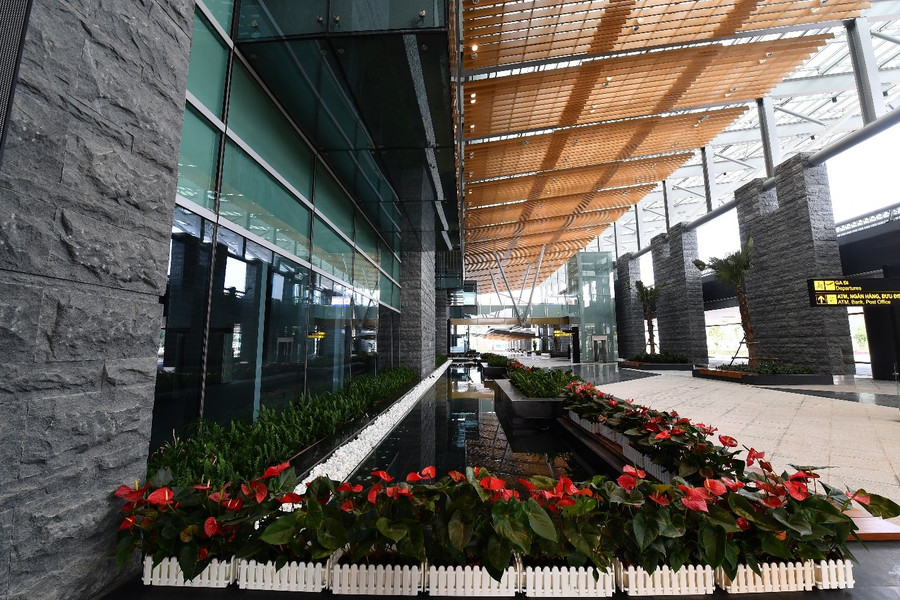 Hệ lam kính hướng ra khu vực sân đỗ máy bay và đường cất hạ cánh được điều chỉnh theo hướng Tây, vừa giúp đón ánh sáng tự nhiên chan hòa cho không gian, vừa có tác dụng giảm bức xạ nhiệt tới 46%.