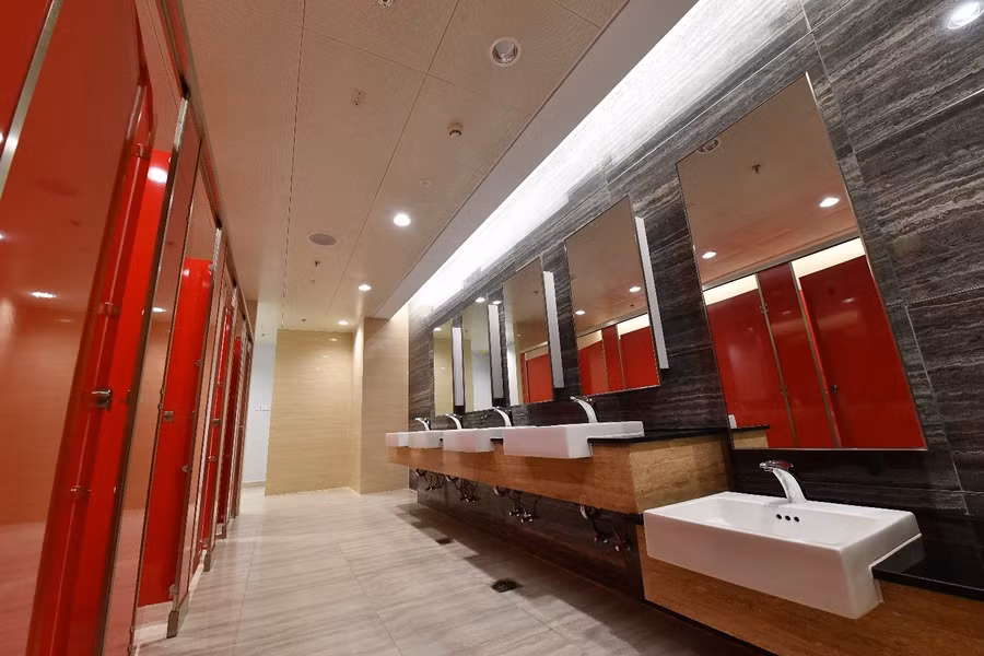 Khu vực vệ sinh thậm chí đẹp ngang ngửa các resort 5 sao, khi được thiết kế bắt mắt với nội thất cao cấp và bồn rửa tay dành riêng cho trẻ em.