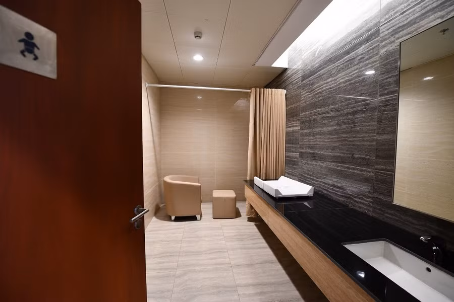 Phòng vệ sinh riêng cho các bé được thiết kế rộng rãi, tiện nghi. Đặc biệt góc nghỉ ngơi cho mẹ và bé sơ sinh được bố trí riêng. Đây là ưu điểm vượt trội mà chưa sân bay nào ở Việt Nam có được.