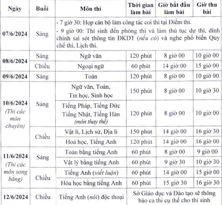 Lịch thi cụ thể như sau: