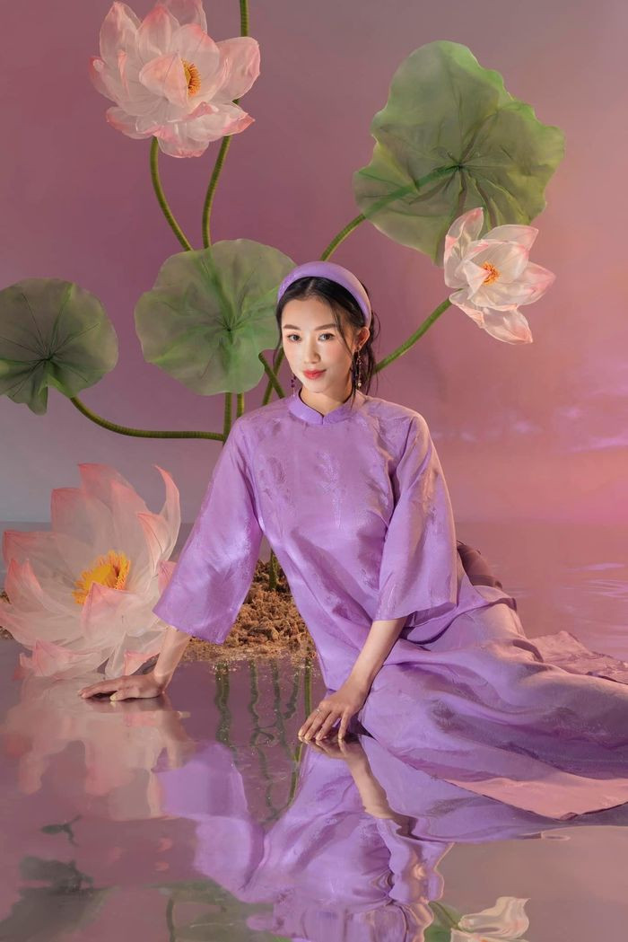 | Hotgirl Salim lựa chọn mẫu áo dài màu tím đơn giản nhưng không kém phần tinh tế. |