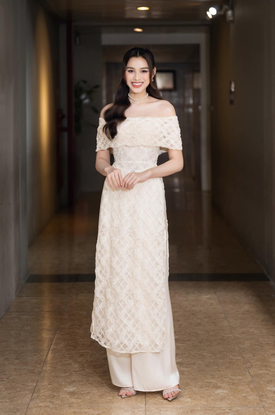 | Hoa hậu Đỗ Hà khoe vai trần cuốn hút khi diện tà áo dài trễ vai duyên dáng kết hợp với vòng cổ ngọc trai và đôi khuyên tai hàng hiệu. Tất cả càng làm nổi bật lên vẻ đẹp tinh khôi của cô nàng. |
