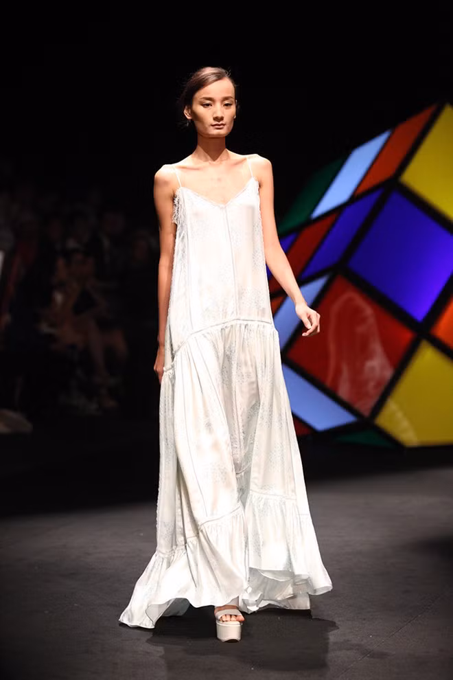 Đầu mùa Thu/Đông 2013, các thương hiệu nổi tiếng như Valentino, Dior, Marc Jacobs... khiến người yêu thời trang bất ngờ khi giới thiệu mốt váy ngủ trên sàn catwalk. Tại Việt Nam, đầu năm 2014, trào lưu mặc trang phục lấy cảm hứng từ đồ ngủ bắt đầu nhen nhóm từ sàn catwalk đến đường phố, bất chấp tranh cãi đây là loại trang phục xuề xòa, dễ gây phản cảm. Thời điểm đó, không ít sao Việt trong đó có Tóc Tiên, Hiền Thục, Phi Thanh Vân, Hương Tràm... đã trở thành thảm họa khi chạy theo mốt kén người mặc này. Trong ảnh, người mẫu Lê Thúy trình diễn một thiết kế trong bộ sưu tập váy ngủ của An Hương và Lê Minh.