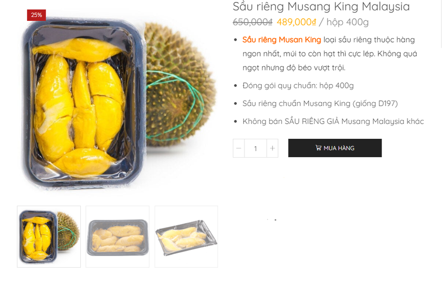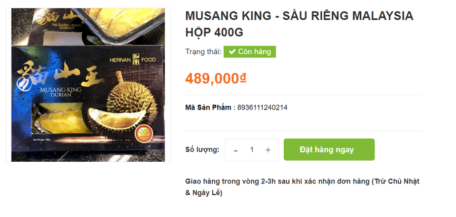Giá bán sầu riêng Musang King tại 2 địa chỉ hoa quả nhập khẩu để chị em tham khảo.