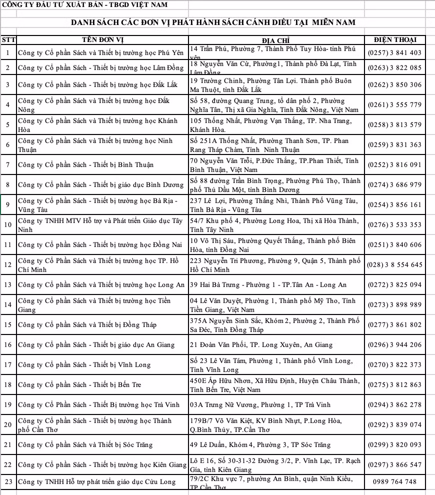 Các địa chỉ phân phối sách giáo khoa Cánh Diều: