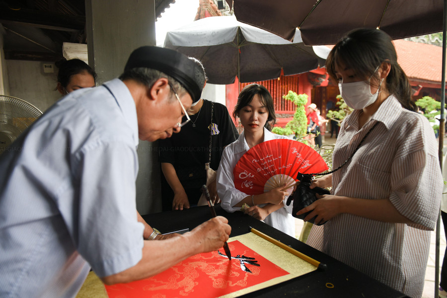 | Nhiều bạn còn mang cả sách đến để cầu may. |