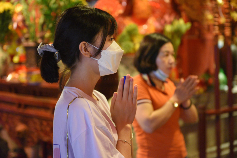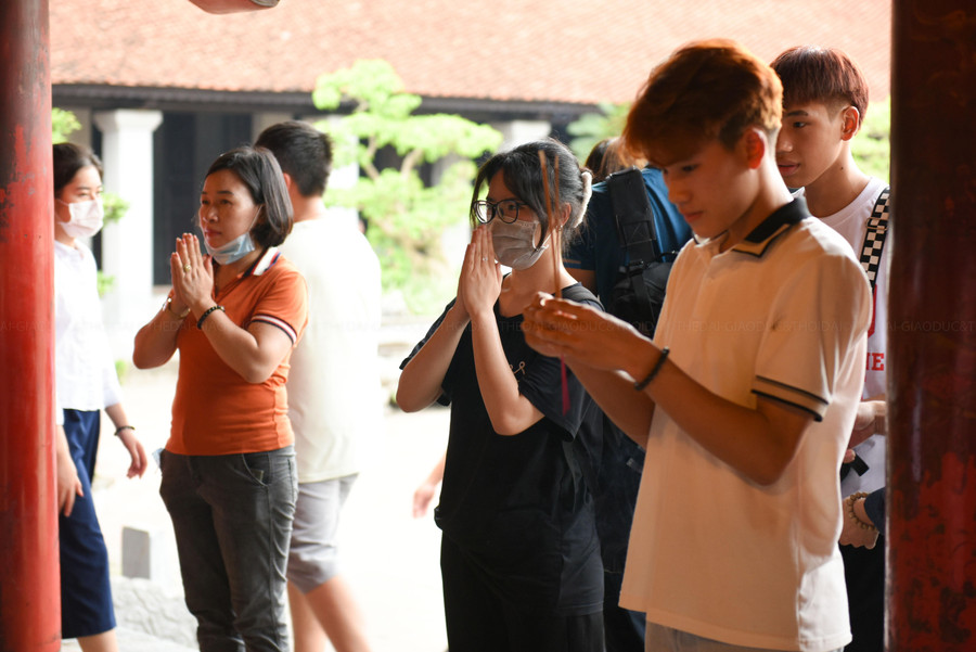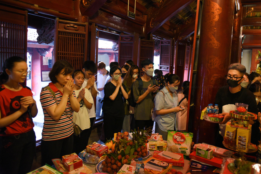 | Các sĩ tử dâng lễ bằng lòng thành kính để mong muốn các vị thánh hiền phù hộ cho sự may mắn, ôn tập chu toàn và đỗ đạt cao trong kỳ thi quan trọng đang tới gần. |