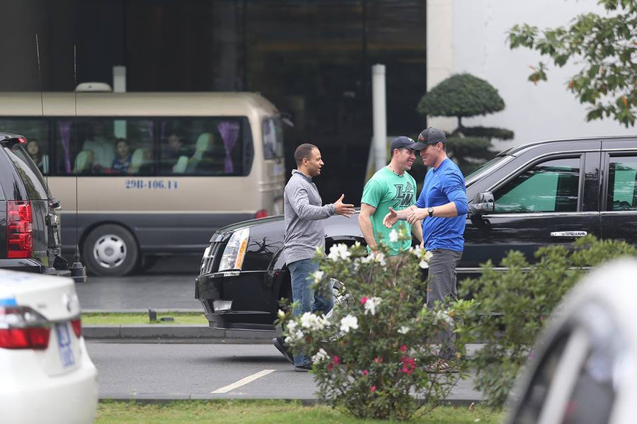 | Sau khi rời sân bay Nội Bài, đoàn xe di chuyển nhanh về khách sạn JW Marriott. |