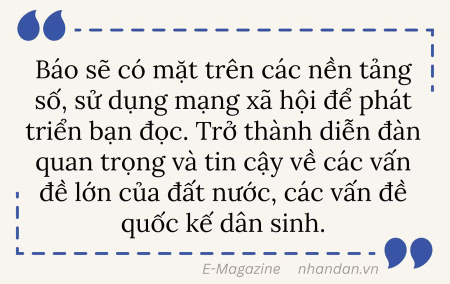 Nhưng trong bối cảnh hiện nay thì sắp tới, Báo sẽ có mặt trên các nền tảng số, sử dụng mạng xã hội để phát triển bạn đọc. Trở thành diễn đàn quan trọng và tin cậy về các vấn đề lớn của đất nước, các vấn đề quốc kế dân sinh.