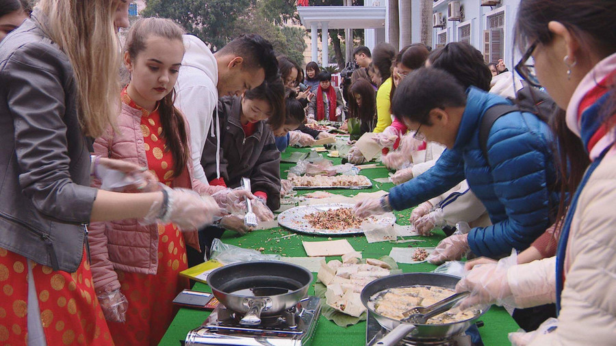 Theo Tiến sĩ Nguyễn Thị Thanh Xuân - Trưởng khoa Việt Nam học, Trường ĐH Hà Nội - hiện nhà trường có khoảng 800 sinh viên người nước ngoài với 26 quốc gia đang học tập tại trường. Năm nay, 81 sinh viên nước ngoài ở lại Việt Nam ăn Tết. Tết Việt 2019 là một trong những chương trình nhà trường tổ chức để các du học sinh tham gia trong thời điểm đặc biệt nhất trong năm của người Việt.