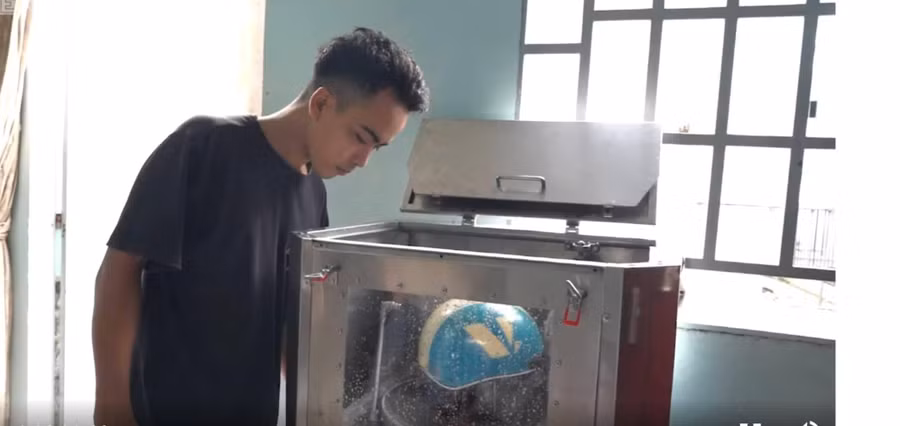 Sáng tạo của nhóm là hoàn toàn từ những vật liệu trong nước, nhóm đã thiết kế, chế tạo máy hoạt động trơn tru, hiệu quả. Khi ứng dụng thử nghiệm, máy hoạt động tốt, mũ bảo hiểm được làm sạch mà không ảnh hưởng đến kết cấu sản phẩm.