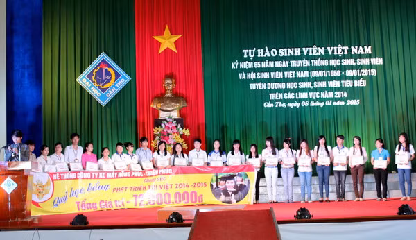 Trong chương trình, Ban Chấp hành Hội SV Trường ĐH Cần Thơ đã trao 107 giấy khen cho HSSV có thành tích tiêu biểu trong các hoạt động phong trào năm 2014 và trao chứng nhận đạt danh hiệu “Sinh viên 5 tốt “ cấp trường cho 299 SV.
