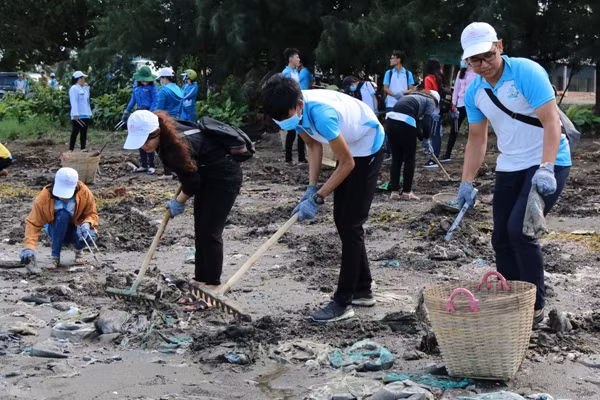 Sau buổi mít tinh, gần 200 sinh viên Trường Đại học Kiên Giang và cán bộ, đoàn viên thanh niên, lực lượng vũ trang trên địa bàn thị xã Hà Tiên đã ra quân vệ sinh bờ biển khu vực ngã ba Cây Bàng, xã Thuận Yên, thị xã Hà Tiên.