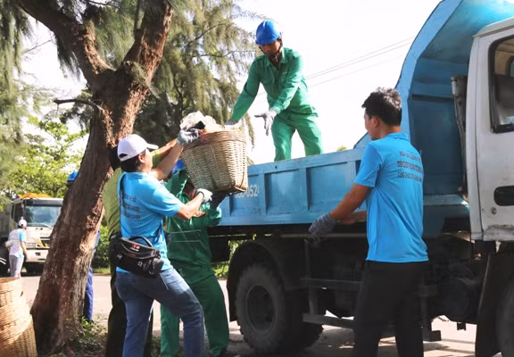 Một số hình ảnh dọn dẹp vệ sinh của Đoàn viên thanh niên, cán bộ, lực lượng vũ trang tại khu vực bờ biển ngã ba Cây Bàng, xã Thuận Yên, thị xã Hà Tiên: