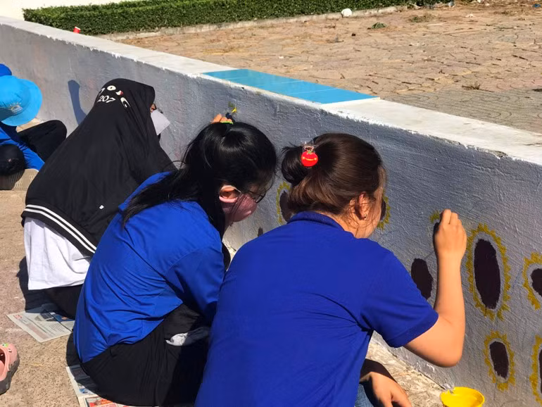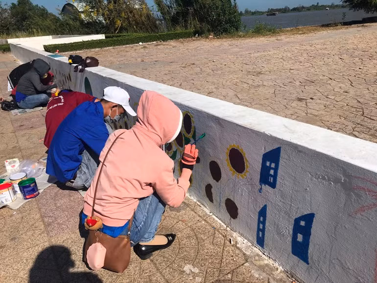 Sau đây là một số hình ảnh sinh viên Trường CĐ nghề Cần Thơ và thanh niên phường Bùi Hữu Nghĩa chung tay vẽ bích họa trang trí: