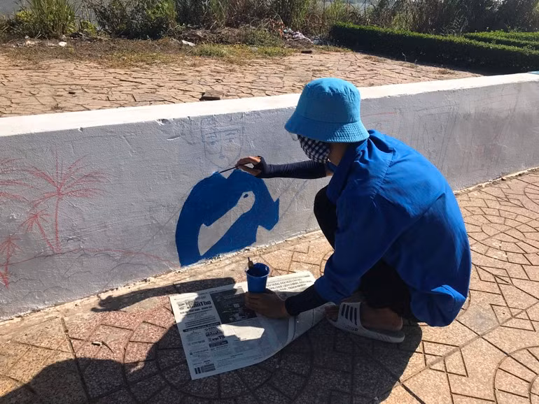 Trường CĐ nghề Cần Thơ cùng Đoàn phường Bùi Hữu Nghĩa vẽ trang trí, trả lại không gian sạch sẽ cho người dân.