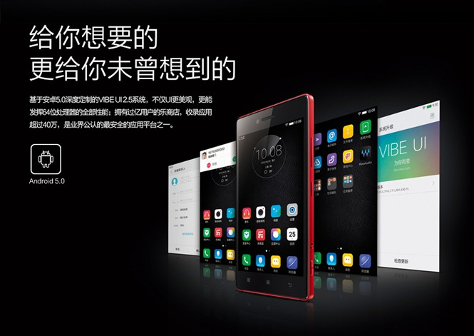 Vibe Shot chạy nền tảng Android Lollipop cùng giao diện người dùng do Lenovo tùy biến, màn hình 5 inch 1080p (Lenovo cũng bán thêm phiên bản màn hình 720p), camera mặt trước 8 MP. Máy được trang bị chip 8 nhân Snapdragon 615, 3 GB RAM, 32 GB bộ nhớ trong, và thỏi pin dung lượng 3000 mAh. Vibe Shot dự kiến sẽ được bán ra ở nhiều thị trường khác nữa thay vì chỉ quanh quẩn ở quê nhà như nhiều smartphone trước đây của Lenovo. Tuy nhiên, giá bán của sản phẩm ở các thị trường ngoài có thể sẽ bị đội lên thành 350 USD.