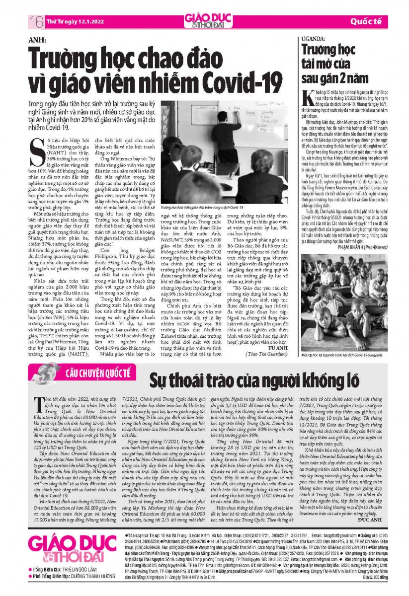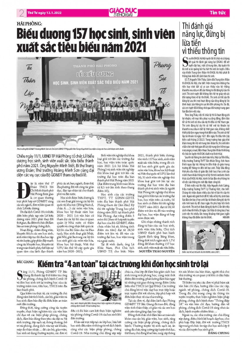 Báo Giáo dục và Thời đại số 10 ra ngày thứ Tư 12/1/2022