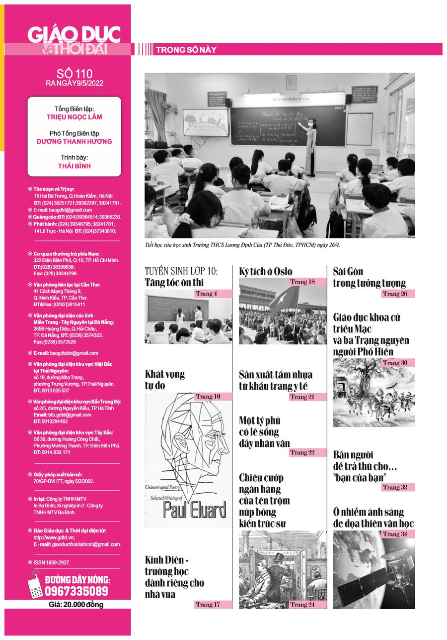 Báo Giáo dục và Thời đại số 110 ra ngày thứ Hai 9/5/2022