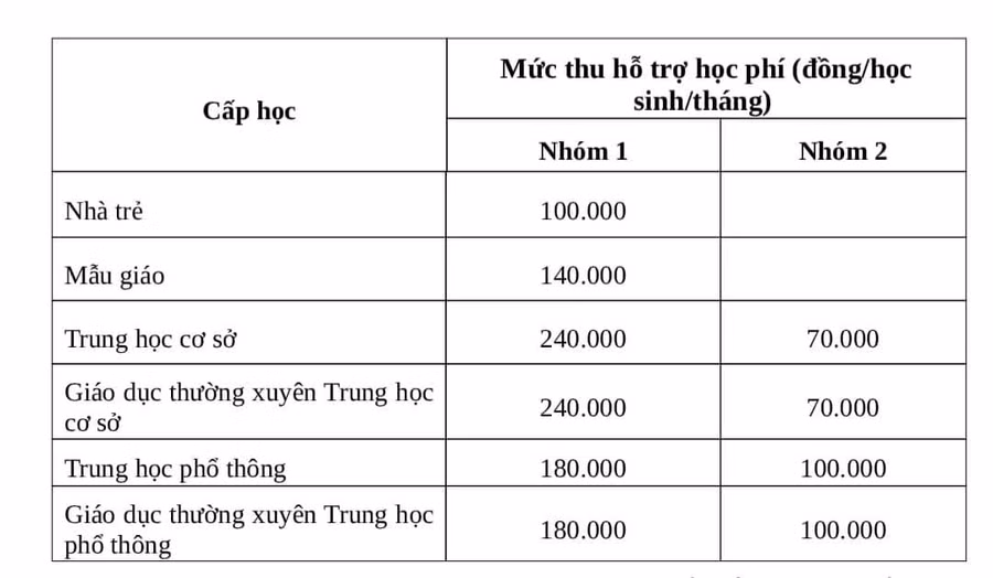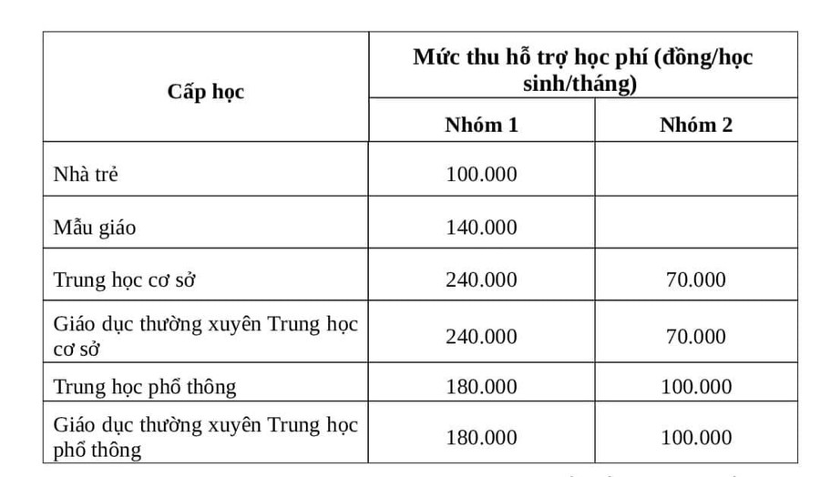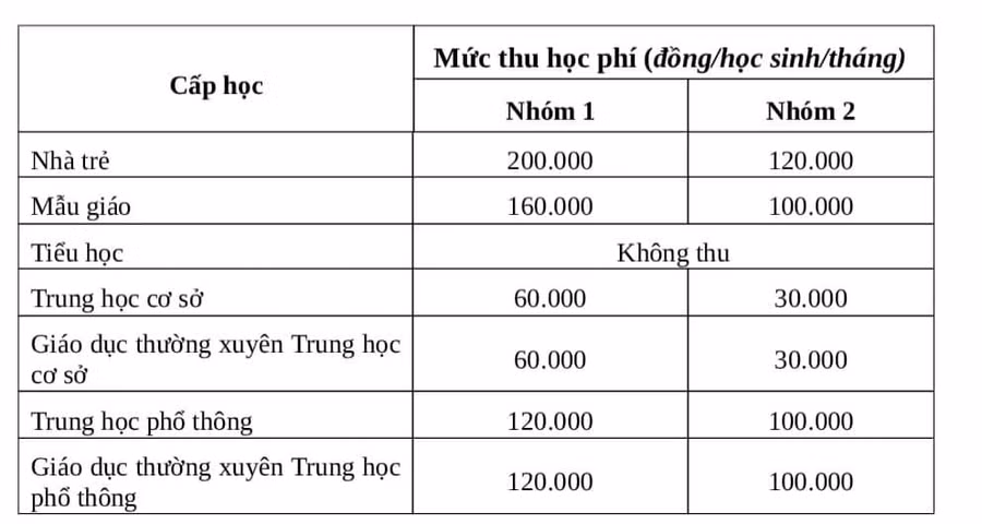 Vì vậy các trường học chưa tự đảm bảo chi thường xuyên thu học phí năm học 2022-2023 bằng mức năm học 2021- 2022, cụ thể như sau: