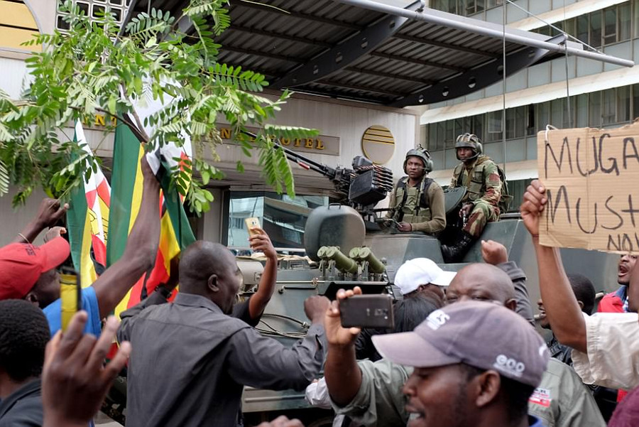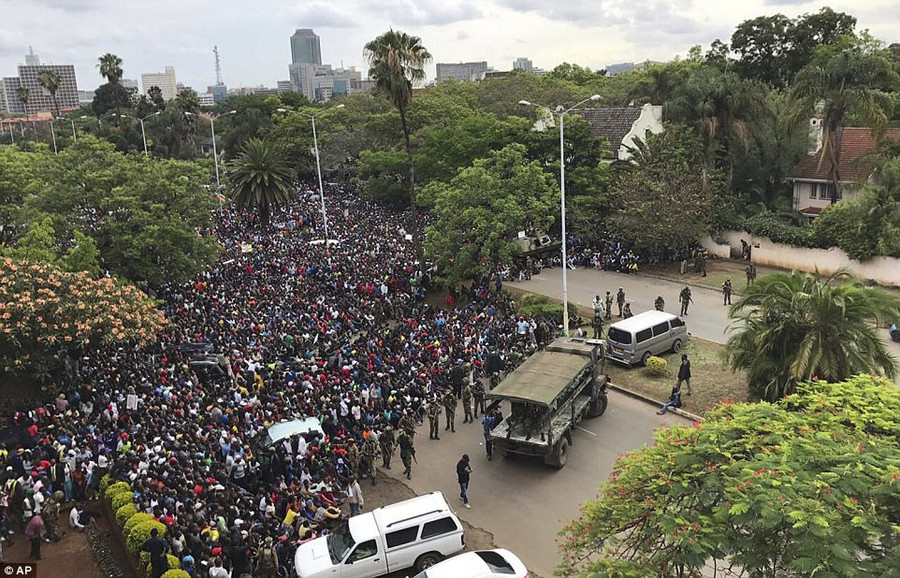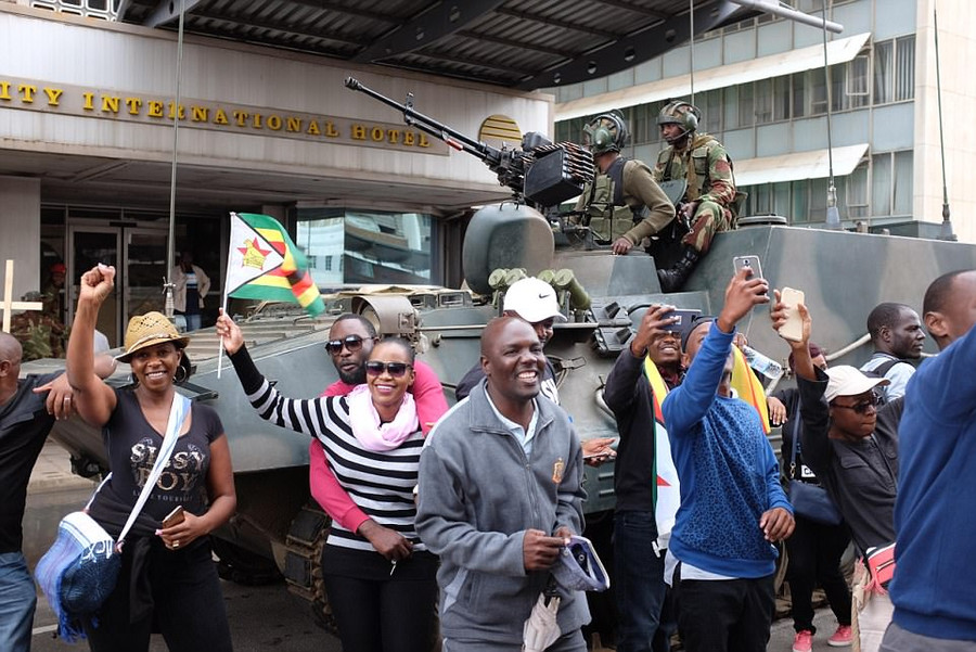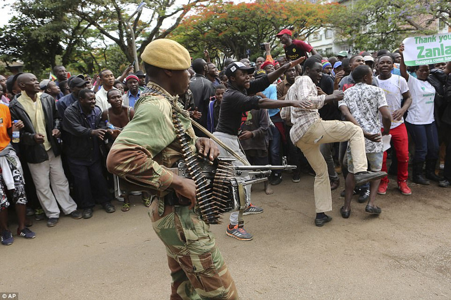 Hôm qua, hàng trăm ngàn người đã xuống đường phố Harare nhảy múa, vui mừng với những người lính trong nỗ lực nhằm lật đổ tổng thống Mugabe.
